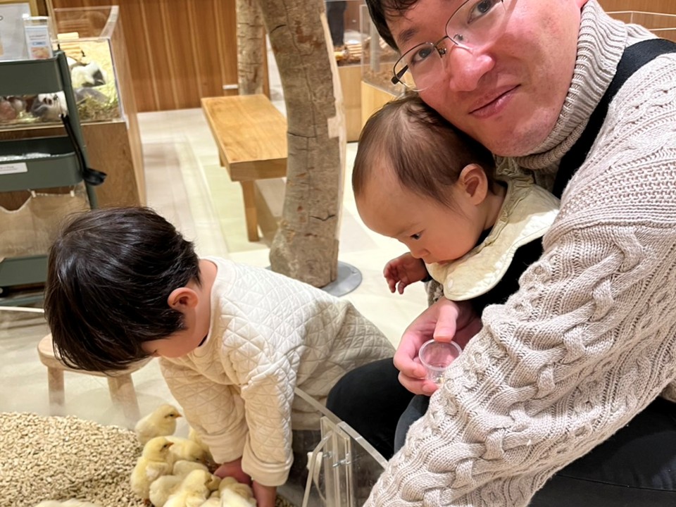 こんにちは。 マーケティング事業部の瀧口です。 先日、初めてららぽーと堺に行ってまいりました。 大きなショッピングモールで色々買い物も出来たのが嬉しかったですが、ハイライトは何といっても「動物カフェ」でした。 我が家は家族全員動物が大好きという事で、ヒヨコ、小鳥、ウサギ、モルモット等いろんな動物…
