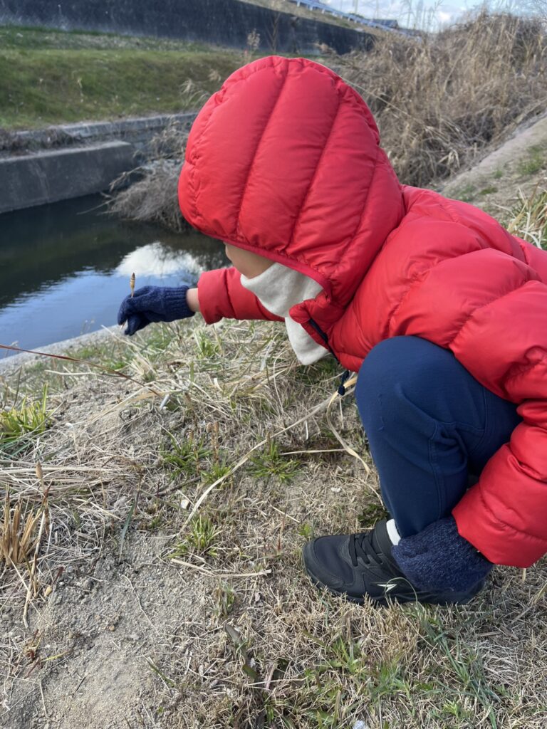 先日、幼稚園帰りの次男との会話で、『今日、幼稚園のお散歩でつくし狩りしてん!場所を教えてあげるから、取りに行かへん?』と誘われ、自宅近くの河川敷にお散歩がてら、つくし狩りに行って参りました。