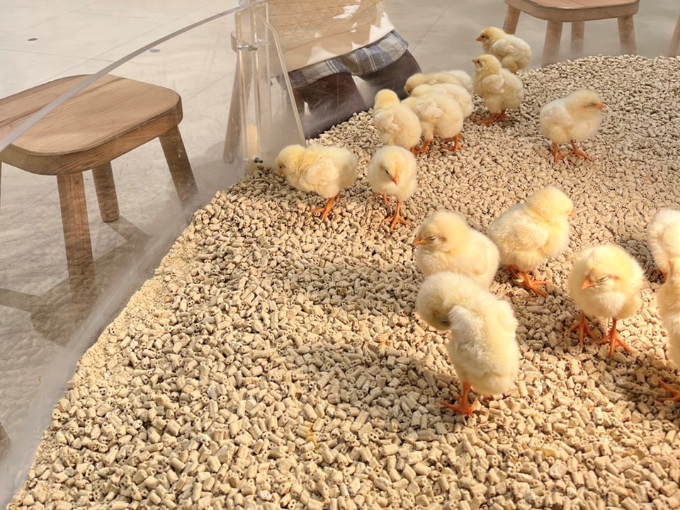 次男坊は1歳になったばかりで、まだ分からないかと思いきや、ヒヨコと触れ合って楽しそうだったのかご満悦でした。